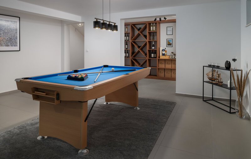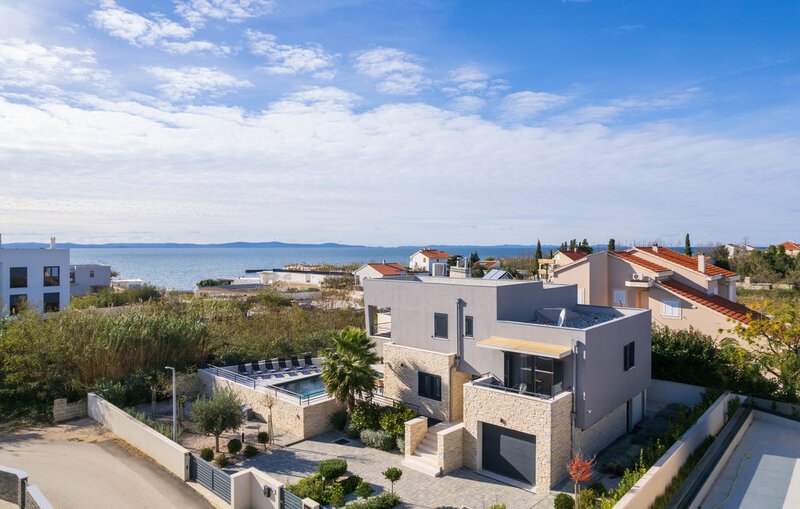 Located in the heart of Privlaka, Villa Roca represents everything you’ve ever dreamed of. A magnificent location, close to a clear sea, luxury holidays, a sauna, and a swimming pool are just some of the advantages offered by this modern villa. Privlaka is characterized by magnificent sandy beaches and quiet coves and is a perfect place for those who come with their own family with children, while on the other hand, it is ideal for groups of friends who want to relax and have fun. Villa Sunflower was built in 2021 in a modern architectural style, it has 330 m2 and is located only 50 m from the sea. Villa Sunflower can accommodate a maximum of 8 people and a maximum of 6 people and welcomes its guests on the upper floor in 3 bedrooms with double beds and private wardrobes. All bedrooms have a private bathroom with a shower. Two of these bedrooms have a private balcony, while the third has a terrace. From all rooms, you can enjoy the view of the sparkling Adriatic Sea. If you are coming with children, a folding bed (60×100) is also at your disposal. The villa itself has two other regular bathrooms, also with showers, and you can use the washing machine, dryer, and iron. The villa is fully air-conditioned; underfloor heating and cooling are only available in the bathrooms, and additional amenities, such as a fully equipped kitchen with everything you need to prepare your favorite delicacies, are at your disposal at all times. Next to the kitchen is a dining room with a table for 8 people, next to a living room with a corner sofa, coffee table, and TV, and from there, there is an exit to the terrace. On the outdoor terrace, you can refresh yourself in a 30 m² heated pool, sunbathe on the 6 surrounding loungers, and next to the pool, there is a sauna where you can completely relax. A charcoal or wood-burning outdoor fireplace and a 10-seater outdoor dining table are also available. The entertainment that will delight you at Villa Tournesol is located in a separate room where you will find a billiard table, a sofa bed with two armchairs, and a table. A special advantage is that you can see the lower part of the pool from this room. The villa is fully fenced, has a beautifully landscaped garden with flowers, and offers enough space for children to play and have fun in the open courtyard during the day or night. It has a garage with a private parking space, while there are two more outside the courtyard.You’ll also be thrilled by the wine cellar, where you’ll find bottles of various types of high-quality traditional Dalmatian and Slovenian wines, as Privlaka is also known for its hardworking winemakers. Seafood is also part of the rich gastronomic offerings of this beautiful place, such as shellfish, fresh and freshly caught sea fish, prepared in various ways. Dalmatian prosciutto and various cheeses are also part of the rich and high-quality offerings of taverns and restaurants. Thanks to its location and proximity to national parks such as Paklenica, Krka Falls, or Kornati, you have the opportunity to take various day trips and visit the famous Cerovac Caves. If you enjoy an active holiday, go rafting on the Zrmanja River. The nearest cities to choose from are the royal town of Nin and the historic city of Zadar. Visit Privlaka, make the most of your vacation, and enjoy the charm of Villa Sunflower! Welcome!